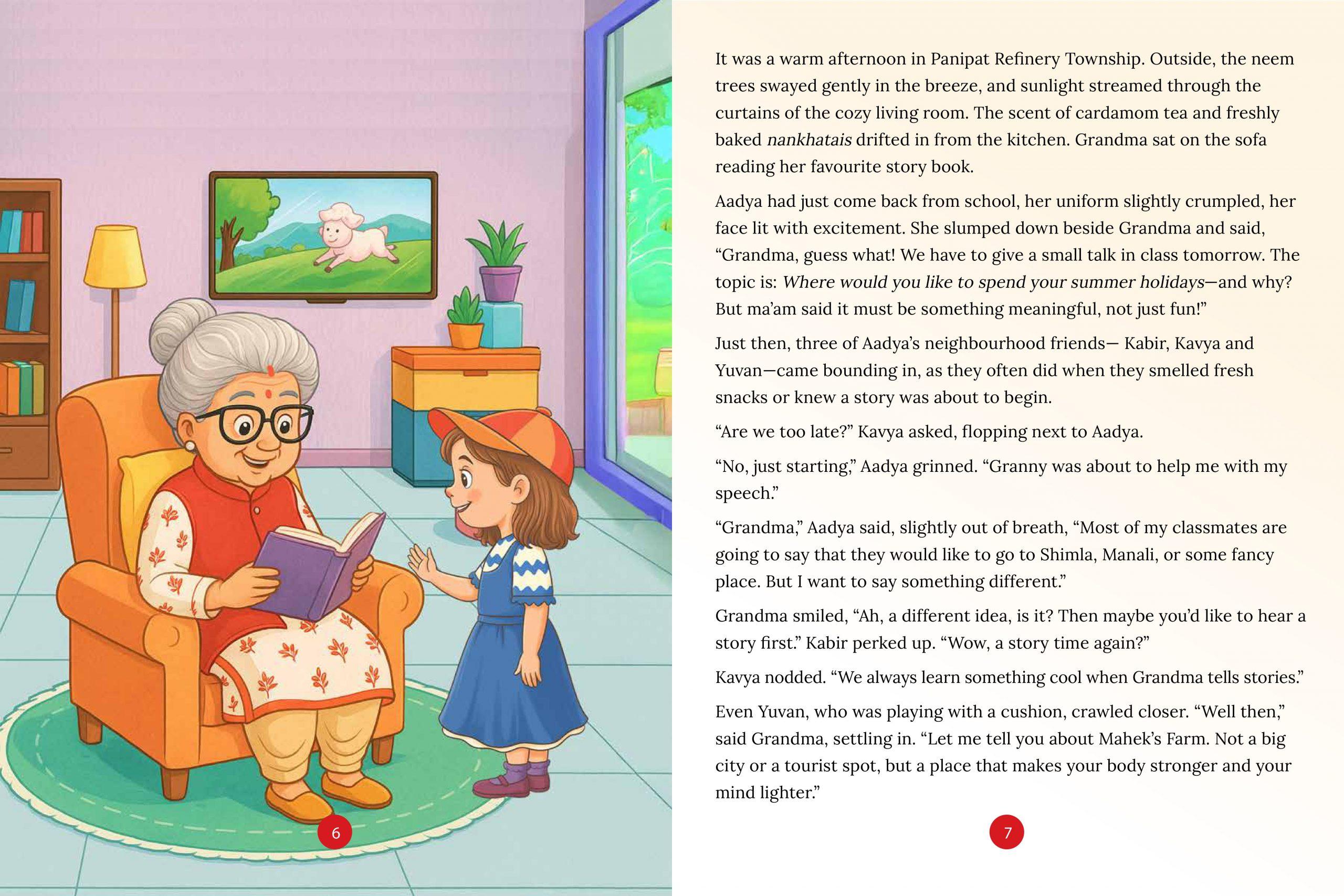 Rooted in SDG 3: Good Health and Well-Being, the story highlights the importance of reconnecting with nature, embracing simplicity, and fostering mental and physical wellness. At the farm, Vihaan discovers the therapeutic benefits of greenery and the joy of sustainable living.